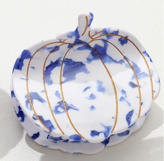 Embrace autumn with the Coastal Pumpkin Claw Clip, featuring a charming carved pumpkin design accented by hand-painted gold details. Crafted from eco-friendly materials, this durable yet comfortable accessory brings a touch of Chicago’s popular coastal blue print to your fall style. Its unique coastal vibe adds seasonal flair while offering a reliable grip, perfect for everyday wear. Slight color variations make each piece truly one-of-a-kind. Elevate your look with this stylish, sustainable clip that celebrates the best of fall.