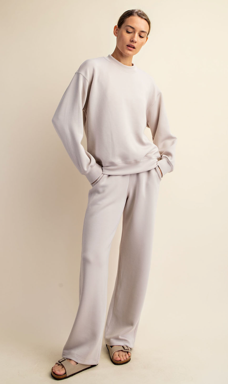 Experience ultimate comfort with the Cream Crewneck, crafted from silky smooth, lightweight Modal Poly Span Scuba fabric. Its oversized, relaxed fit and mock neck design make it perfect for lounging at home or casual outings. The pullover’s seamed details add subtle style, blending coziness with effortless elegance for any occasion. Check out matching Cream Sweatpants!