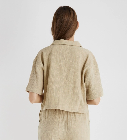 Crafted from a textured cotton-linen blend, the Dreams Top offers a relaxed fit with short sleeves and a stylish collar. Its lightweight fabric feels breathable and refined, making it an ideal choice for staying comfortable and chic during warmer days. Elevate your casual wardrobe effortlessly with this versatile blouse.