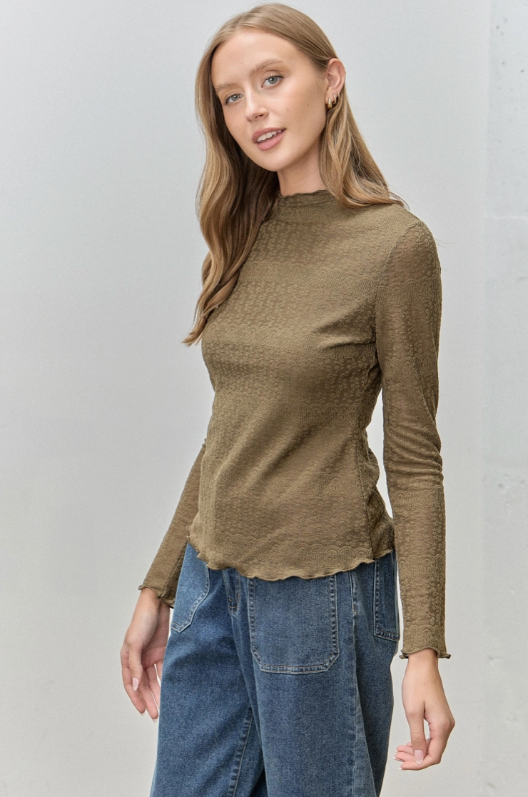 The Find Me Top combines contemporary style with comfortable versatility. This piece features a flattering mock neck that frames your face while providing subtle warmth, paired with delicate lettuce edge detailing that adds a playful, feminine touch to the sleeves and hem. Perfect for layering or wearing solo, this top transitions effortlessly from casual days to evening outings. The thoughtful design details elevate your everyday wardrobe with understated sophistication.