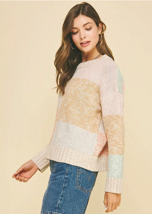 Layer up in effortless style with this colorblock crew neck sweater. The bold color blocking adds visual interest while the soft, comfortable knit keeps you cozy through every season. Long sleeves provide warmth without bulk, making it perfect for layering or wearing solo. A timeless piece that transitions seamlessly from casual weekends to relaxed workdays.