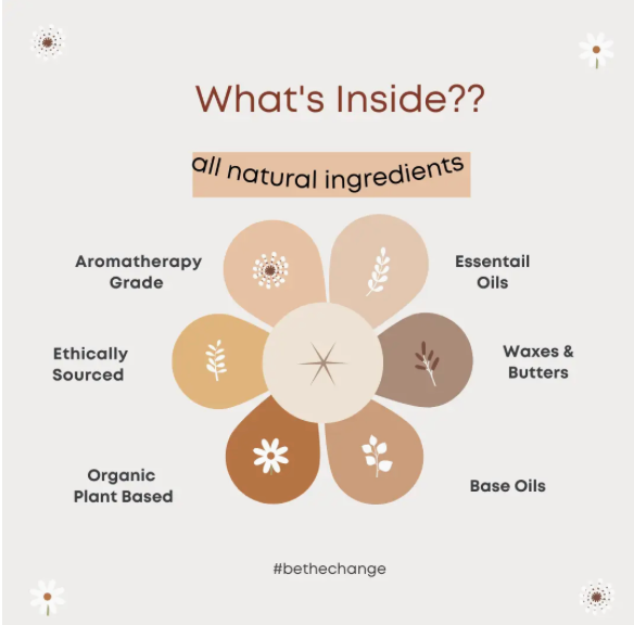 Ingredients: organic fair trade shea butter, mct oil (coconut oil) and essential oils
