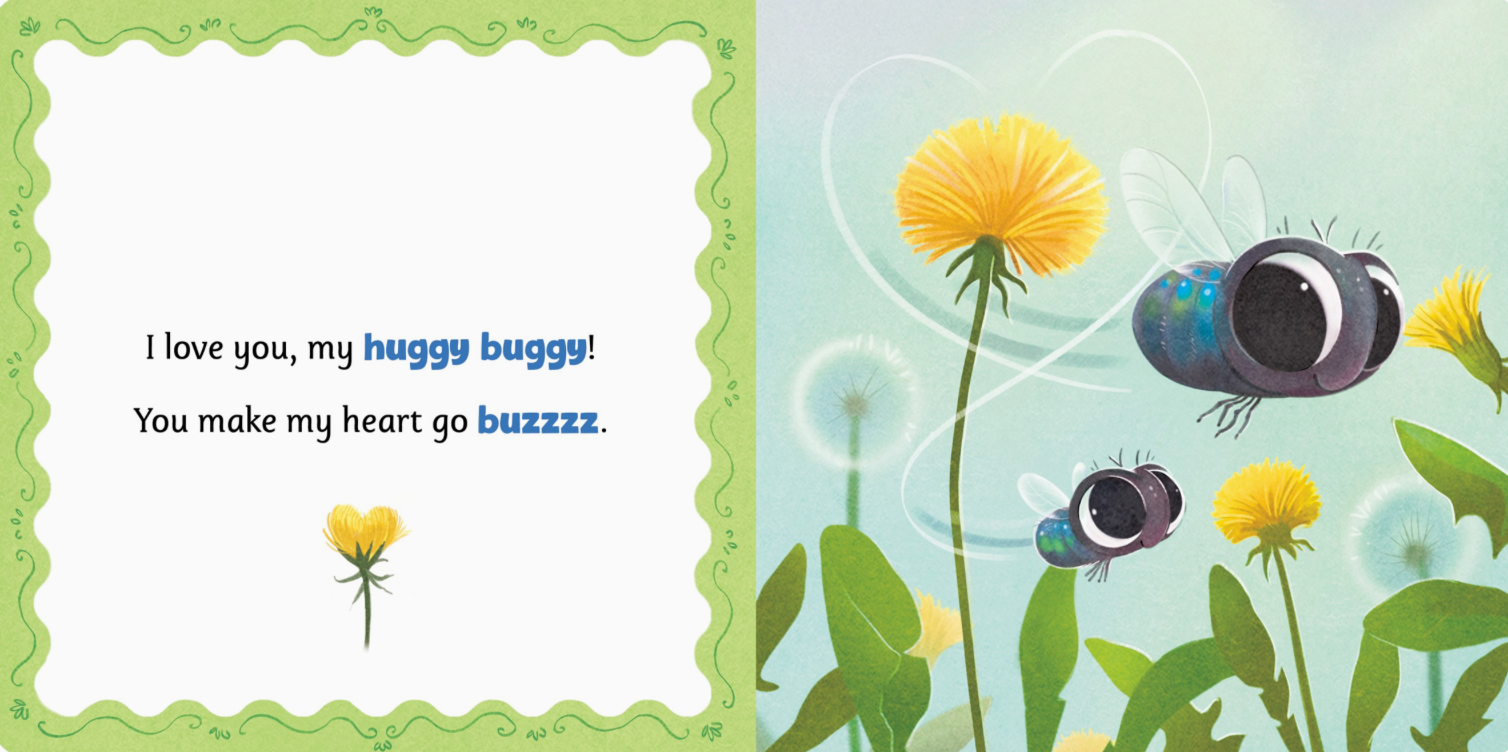 Tell your snuggle bug you bee-lieve in them with this heartwarming board book of love from the USA Today bestselling series that brought you I Love You Like No Otter! Show your little one they mean the worm to you! With adorable illustrations by Sydney Hanson and punny rhymes that will have your baby or toddler buzzing with laughter, this charming story is a crawl-some way to let your cuddle bug know they'll always bee in your heart! I Love You, My Huggy Buggy is the perfect book to encourage and in-spider young readers ages 0-3. Made for little lovebugs, this board book is the perfect gift for baby showers, read-aloud, bedtime, and any time of year! I love you, my Huggy Buggy! You make my heart go buzzzz. You mean the worm to me. You're the best that ever was!