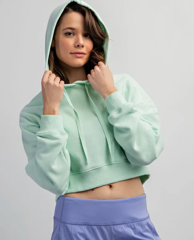 Elevate your workout wardrobe with the Minty Sweatshirt, a cropped French Terry jacket designed for both style and performance. Its breathable fabric and adjustable hood offer comfort and customization, while the long sleeves and cropped fit provide a modern edge. Ideal for basketball, tennis, or casual layering, this jacket keeps you looking sharp and feeling ready for any activity. Embrace versatility without sacrificing comfort.