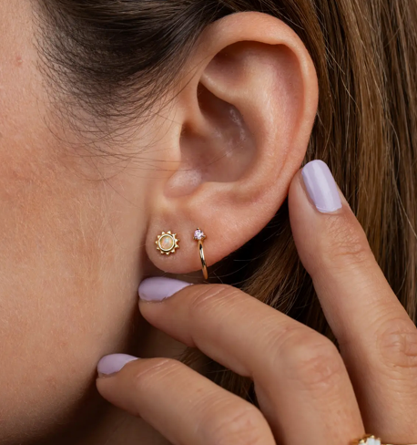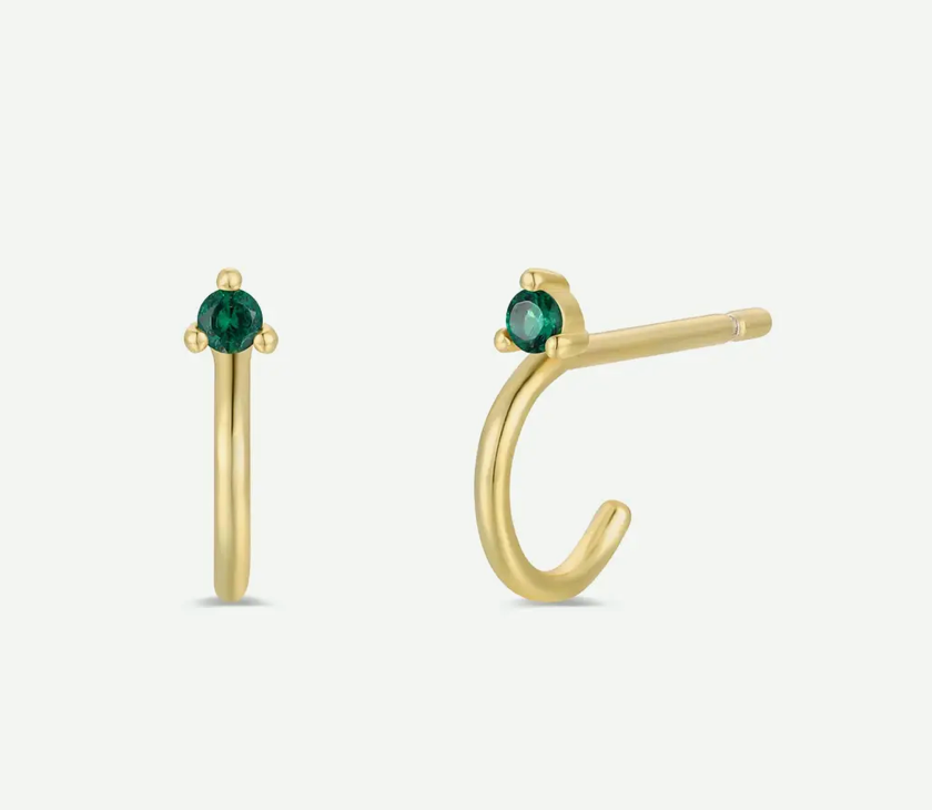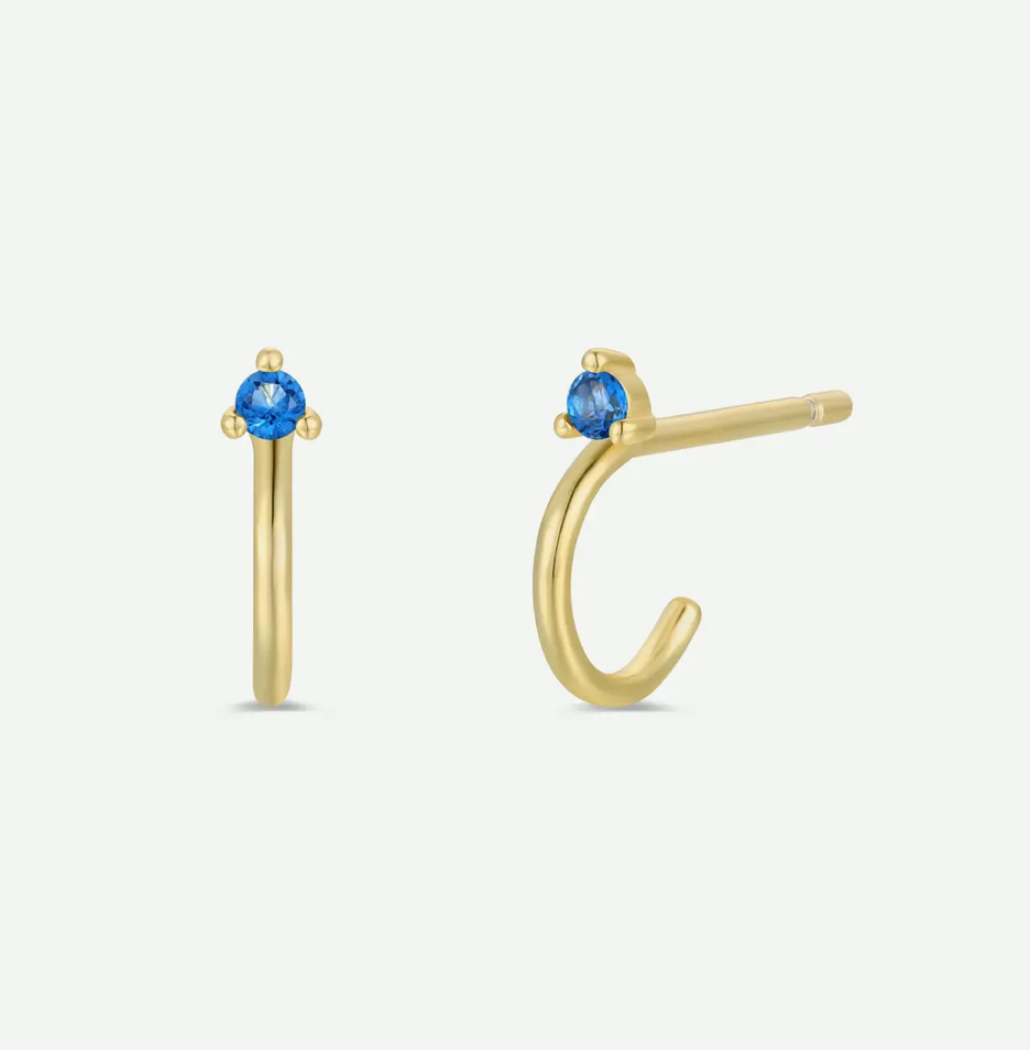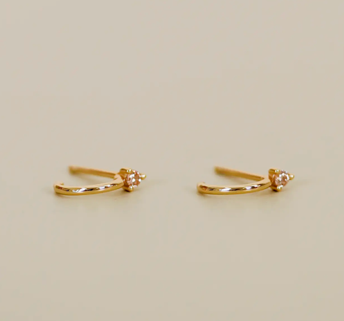 Introducing the Open Mini Hoop - a must-have for any fashionista! The small size and unique straight-back post make this earring a versatile and chic addition to any outfit. The mini cz adds a subtle pop of color, while the sterling silver and 18k gold plating ensure durability and style. Perfect for any occasion!