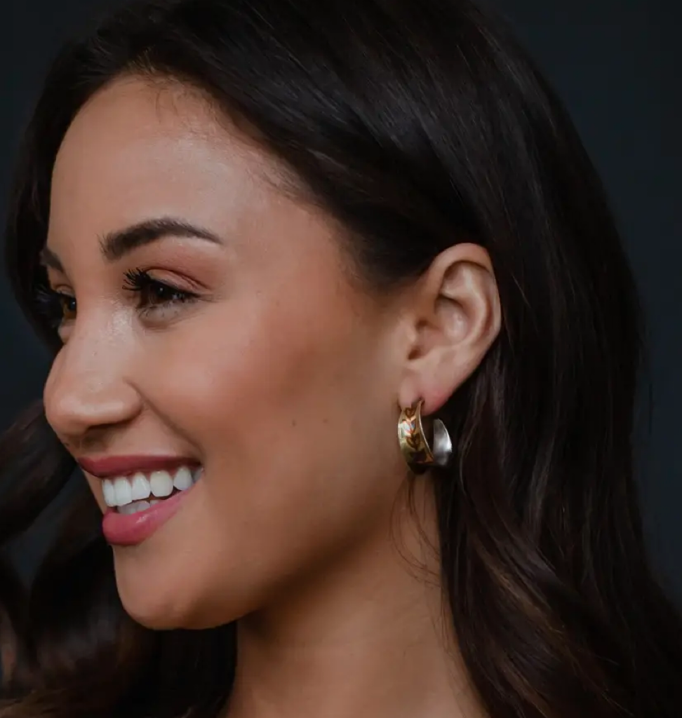 Elevate your look with these exquisite gold hoop earrings featuring a vibrant brown, blue, and yellow pattern. Designed to add a unique splash of color, they effortlessly complement both casual and elegant outfits. Lightweight and comfortable, these hoops make a bold statement while keeping your style sophisticated and fresh. Perfect for everyday wear or special occasions.