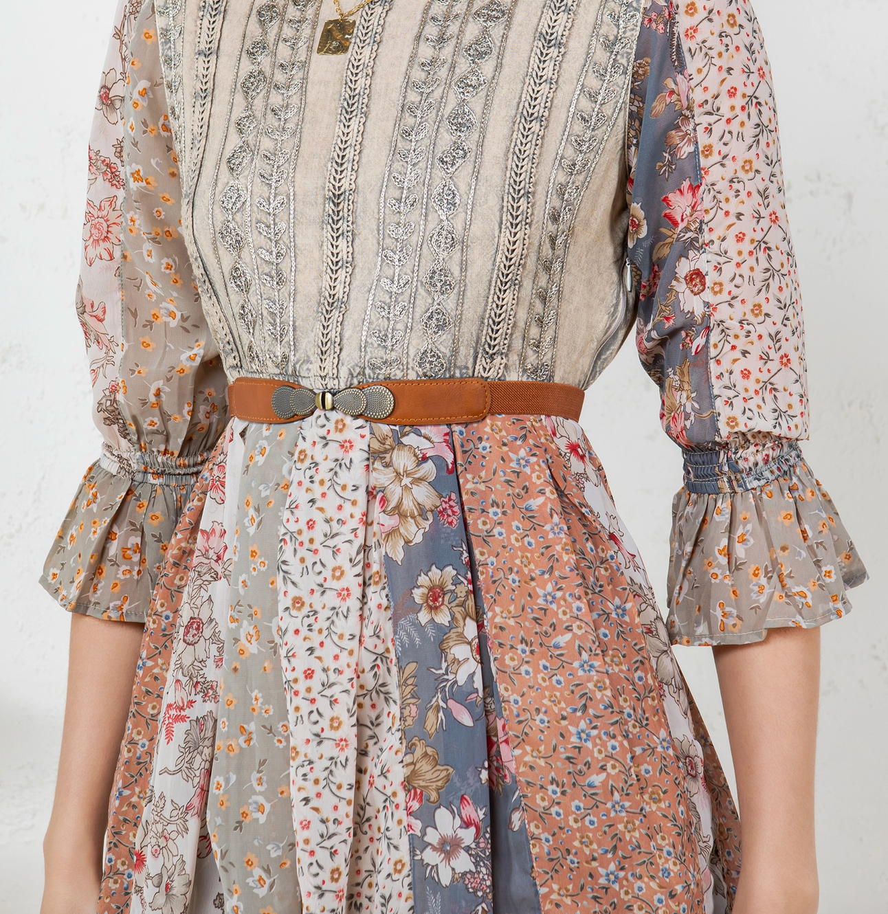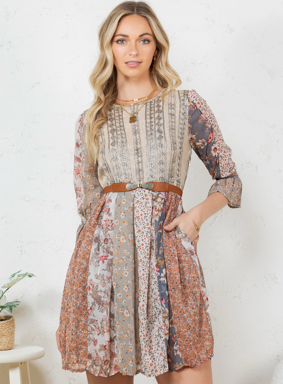 Embrace effortless summer style with the Rising Dress, a mid-length babydoll silhouette crafted from soft, breathable rayon. Its relaxed fit and round neck offer all-day comfort, while the printed patchwork design blends boho and Western influences for a unique, playful look. Perfect with sandals or heels, this lightweight dress drapes beautifully, keeping you cool and stylish. Easy to care for with hand wash instructions, the Rising Dress is your go-to choice for carefree, feminine summer days. (Belt not included)