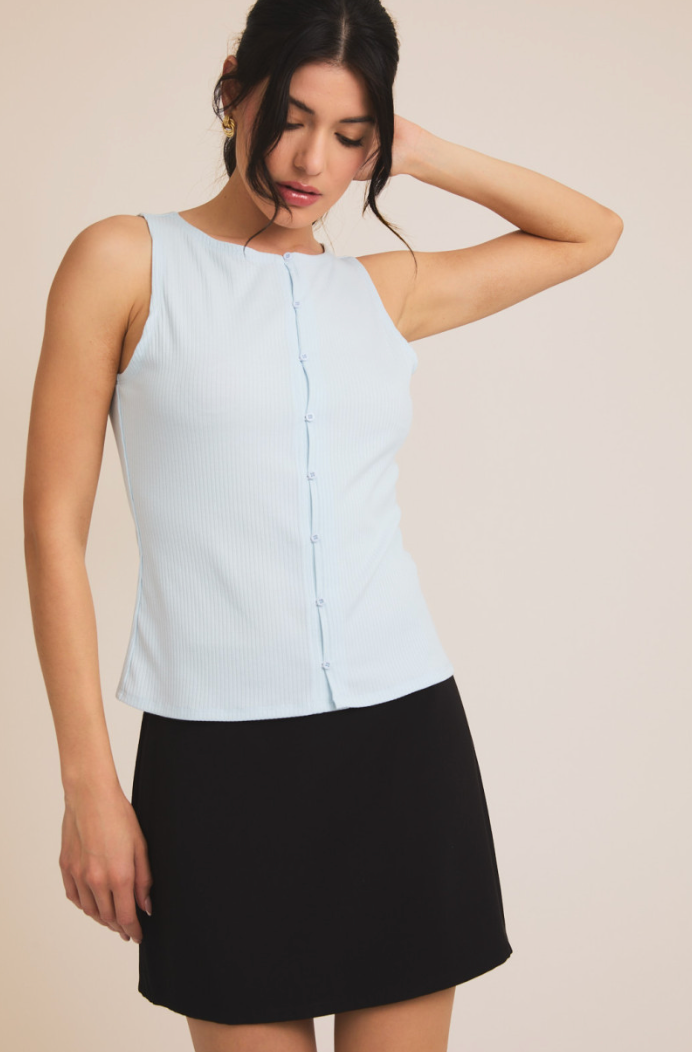Introducing the Serene Tank - a stylish and versatile addition to your wardrobe! This boat neck, sleeveless vest features a button up design, perfect for layering or wearing on its own. Feel confident and comfortable all day with this must-have piece.
