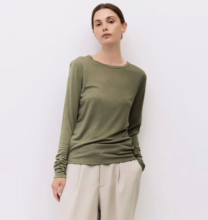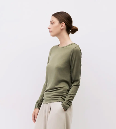 Effortlessly elevate your everyday wardrobe with the Swinging Top. Crafted from luxuriously soft modal knit, this relaxed-fit essential features a classic crewneck and long sleeves that move with you throughout your day. The breathable fabric drapes beautifully while maintaining its shape, making it the perfect layering piece or standalone staple. Whether you're working from home or heading out, this versatile top delivers comfort without compromising on style. A timeless addition that works harder than it looks.
